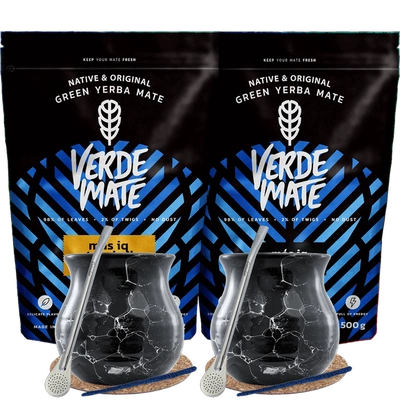 Yerba Mate Mas IQ set for two Bombilla 2x500