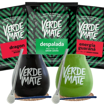 Yerba Verde Mate Set 500g Bucket Bombilla 10x50g