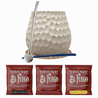 Conjuto de Erva Mate para dois: amostras El Fuego 3x50g + 2x Calabaza + 2x Bombilla