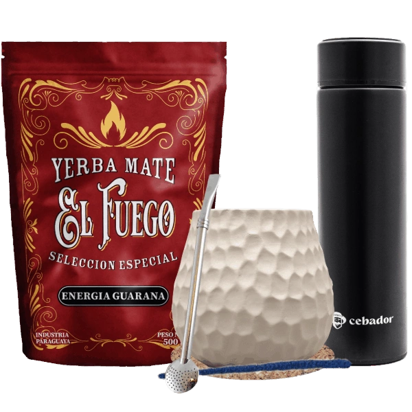 Conjuto de Erva Mate: El Fuego 500g + Garrafa Térmica LED + Calabaza + Bombilla