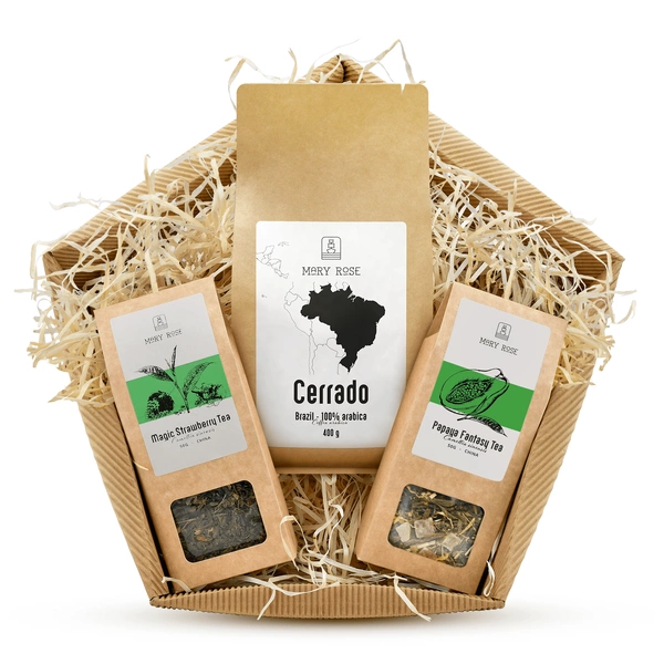 Está a chegar o Natal ou o aniversário de um ente querido? Quer oferecer uma prenda especial a alguém e não faz ideia do que escolher? Um conjunto de chá é a ideia de presente perfeita - para qualquer ocasião! O nosso conjunto de oferta especial é uma seleção de dois chás Mary Rose e café artesanal, acabado de torrar, em grão inteiro. O conjunto inclui também uma elegante caixa de cartão para oferta. Altamente recomendado!