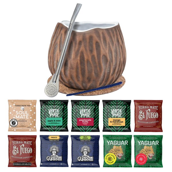 Yerba Mate Set 10x50g Calabash Coconut Bombilla 500g