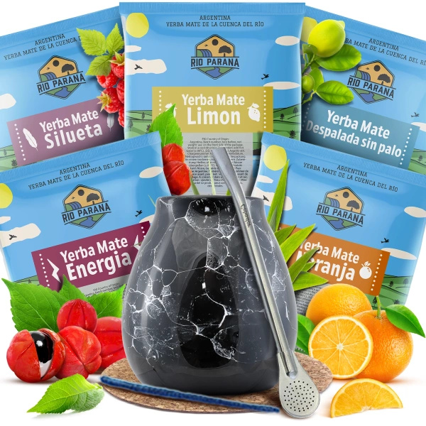 Conjunto inicial de Erva Mate Calabaza + Bombilla 10x50g