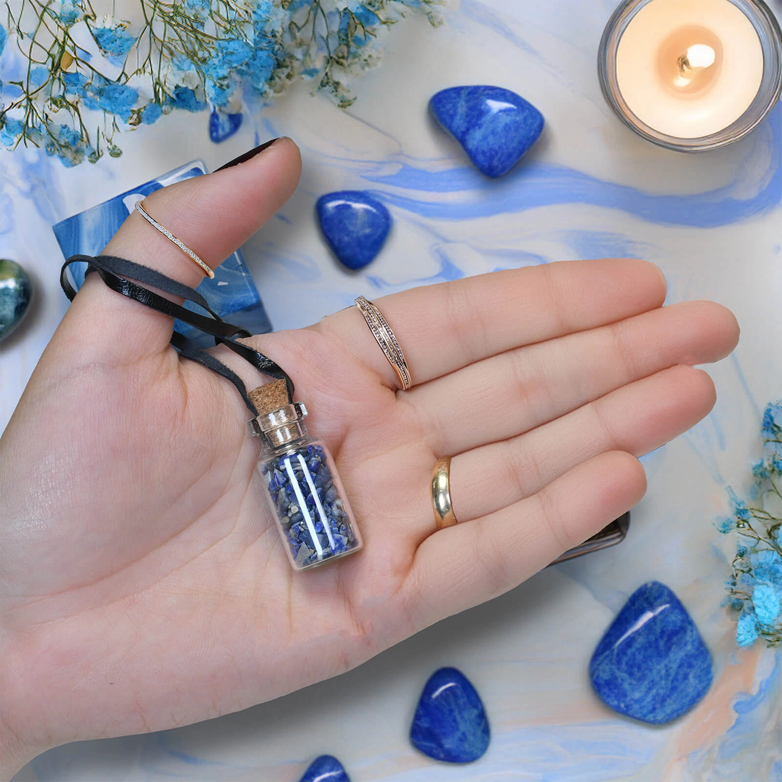 - O lápis-lazúli é uma pedra preciosa deslumbrante com uma cor azul profunda e intensa. É conhecida como a pedra da sabedoria e da verdade. Encerrado num frasco de vidro, não é apenas uma decoração impressionante, mas também um poderoso talismã!
