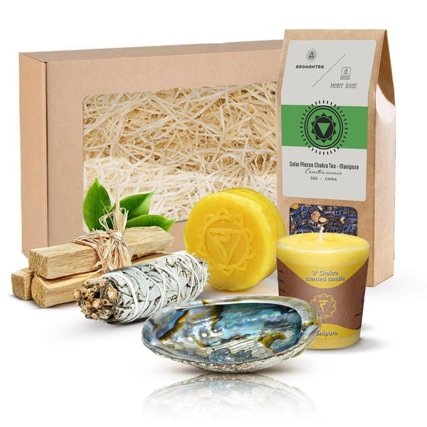 Conjunto de oferta para Chacra Umbilical (Manipura) chá de chakra + incenso + vela