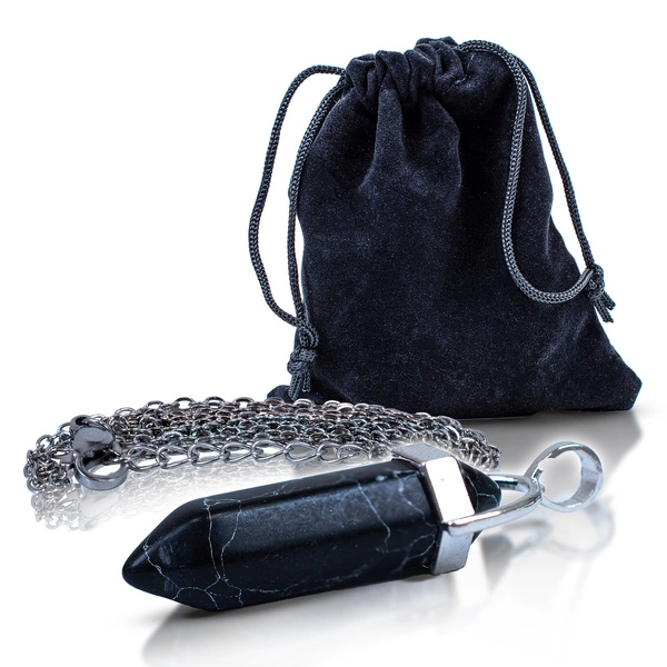 - O pendente de turquesa preta é uma forma simples e elegante de proteção energética. A pedra sintética, de cor preta profunda com veios claros, apoia a intuição, a ligação à terra e o equilíbrio espiritual.