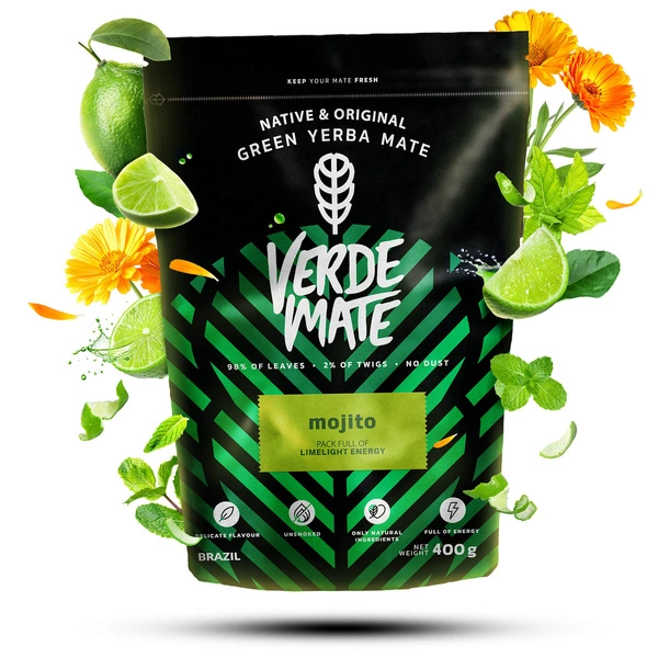 - Verde Mate Green Mojito é uma erva-mate refrescante com sabor a menta e lima - inspirada no sabor do mojito. Perfeito tanto quente como frio - aumenta a energia natural e delicia-se com a frescura dos citrinos. Altamente recomendado!