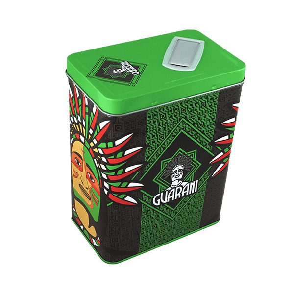 Procurando uma maneira conveniente de armazenar sua erva-mate favorita? Escolha Guarani Boldo Menta em uma lata de metal - Yerbera com um dispensador prático que mantém as folhas frescas e facilita o porcionamento! 🌿💚