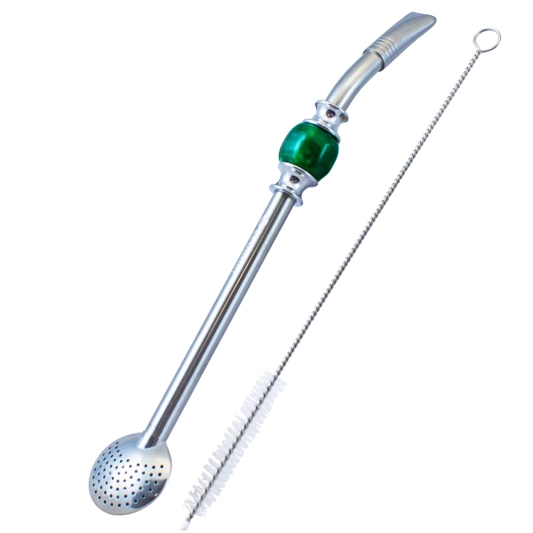 • Big bombilla "Bomba" 22 cm for yerba mate with a colored cooling stone at the mouthpiece. Stainless steel ensures durability and resistance to mechanical damage and high temperatures. Simple design gives elegance and functionality.