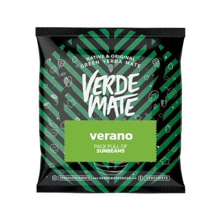 - Verde Mate Green Verano é uma erva-mate leve e frutada com notas de maçã, manga e lima. Inspirada no verão, sabe bem tanto quente como fria, proporcionando refrescância e energia natural!