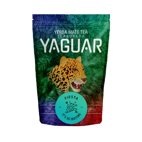 - Yaguar Fiesta é uma erva-mate aromática com um toque de morango, melancia, hortelã e erva-cidreira. Refrescante e de sabor delicado - perfeita tanto quente quanto como um tereré gelado!