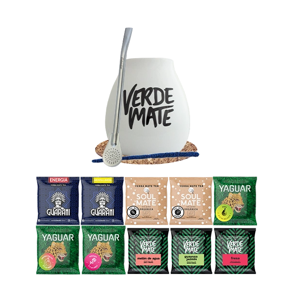 Set Yerba Mate Green 500g Gourd Bombilla 10x50g