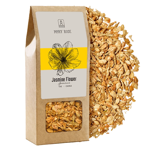 - As flores de jasmim 15 g da marca Mary Rose são tradicionalmente consideradas como tendo propriedades calmantes e relaxantes. Em algumas culturas, as infusões de jasmim são também consideradas afrodisíacos naturais.
