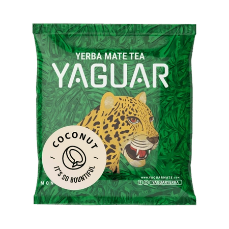 - Yaguar Coconut é, como o nome sugere, uma erva-mate com predominância de côco. O sabor e o aroma agradáveis do côco são os protagonistas e criam uma incrível atmosfera tropical. Experimente!