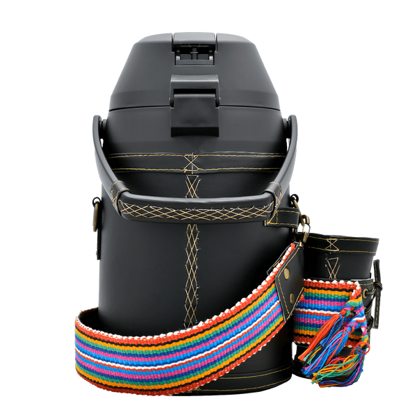 Pozo de Agua é uma garrafa térmica grande de 2,5 litros com o logótipo da marca Cebador. O interior de parede dupla é feito de aço inoxidável. Do lado de fora, tudo é revestido de plástico e couro sintético com decorações feitas à mão. A garrafa térmica está equipada com uma bomba especial que permite deitar facilmente água nos pratos. Além disso, tem um compartimento especial com uma cuia de mate (metálica, estofada com pele sintética), um cinto para transporte e um compartimento para guardar uma bombilla (bombilla não incluída). O Pozo de Agua e modelos similares são um verdadeiro sucesso no Paraguai. Serão também apreciados no nosso país? Temos a certeza que sim!